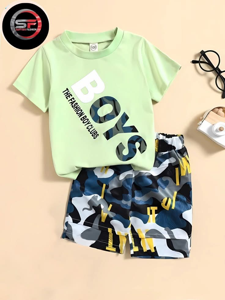 আপনার ছোট্ট ছেলের প্রতিদিনের স্টাইলকে আরও ট্রেন্ডি করে তুলতে সাফিয়া’স ফ্যাশন নিয়ে এসেছে এই ক্যামো বয় স্টাইল কটন সেটটি। হালকা সবুজ রঙের টপসটিতে বড় ফন্টে “BOYS” লেখা রয়েছে এবং তার পাশে রয়েছে “THE FASHION BOY CLOTHES” টেক্সট, যা পোশাকটিকে দেয় একটি ফ্যাশনেবল লুক। টপসটি শর্ট স্লিভ এবং গোল গলা ডিজাইনে তৈরি, যা শিশুর জন্য আরামদায়ক ও সহজে পরিধানযোগ্য।