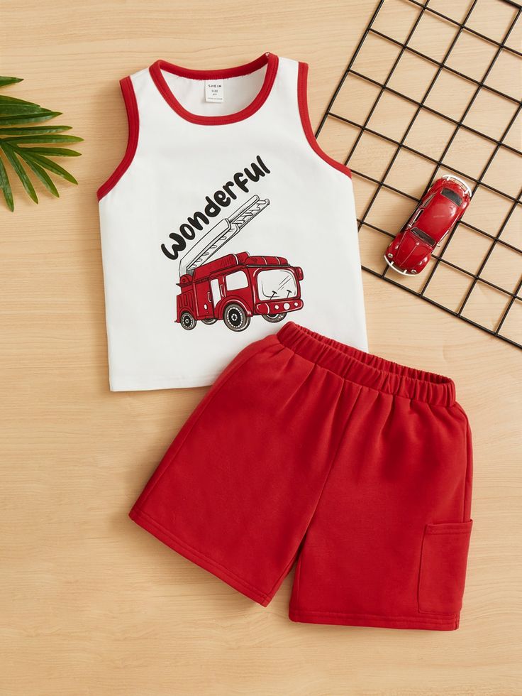 - সাদা টপসে লাল ফায়ার ট্রাকের প্রিন্ট ও “Wonderful” লেখা