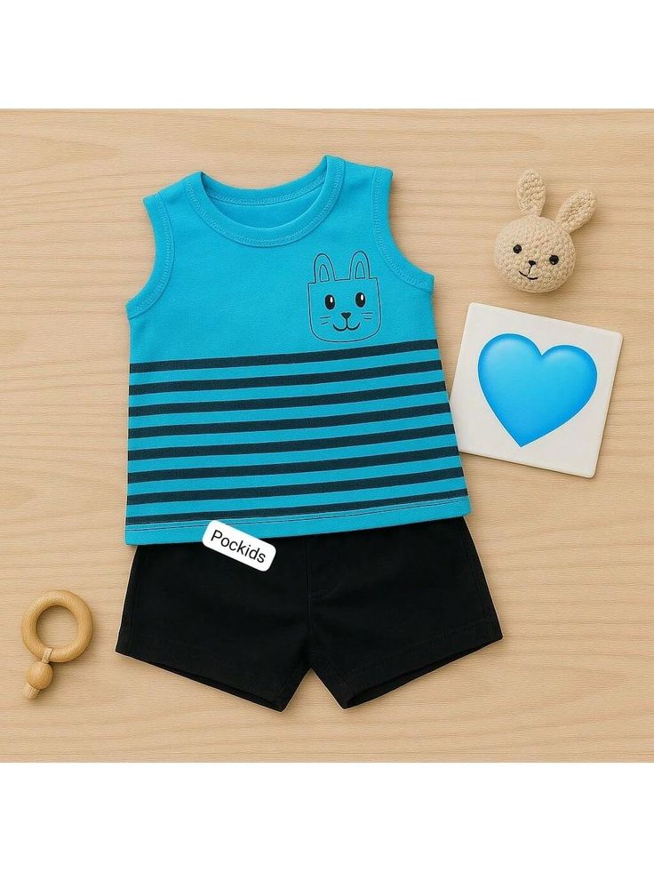 আপনার ছোট্ট রাজপুত্রের জন্য সাফিয়া’স ফ্যাশন নিয়ে এসেছে একটি আধুনিক ও আরামদায়ক কটন পোশাক সেট, যা প্রতিদিনের ব্যবহারেও স্টাইল বজায় রাখবে। টারকোয়েজ রঙের স্লিভলেস টপসটিতে রয়েছে ডার্ক ব্লু হরিজন্টাল স্ট্রাইপ এবং বাম পাশে একটি ছোট পকেট, যার উপর একটি কিউট বানি ফেস প্রিন্ট করা আছে। এই ছোট্ট ডিজাইনটি শিশুর পোশাকে যোগ করে মিষ্টি ও playful টাচ।